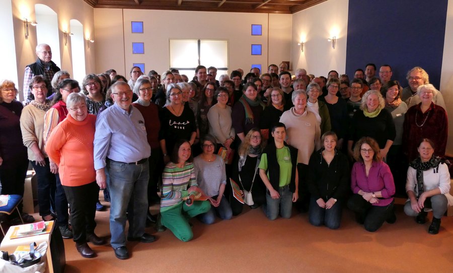 Eugen Eckert, Texter von Neuen Geistlichen Liedern, Bandgründer der Gruppe Habakuk und Stadionpfarrer in Frankfurt, sowie Horst Christill, Pianist, NGL bewegter Kirchenmusiker, Dekanatskantor in Landau und Beauftragter für Popularmusik, NGL und Lobpreis stellten zahlreiche Neukompositionen aus dem Chorbuch „Eine Handbreit bei dir“ vor und brachten diese Psalmlieder mit den begeisterten Teilnehmerinnen und Teilnehmern zum Klingen. Das Wochenende war durch intensive chorische Arbeit geprägt und von spirituellen Morgen- und Abendimpulsen umrahmt, die von Christina Thielmann, Katrin Hirschmann, Kerstin Moses, Nicolette Schmitt und Sebastian Klein (alle Arbeitskreis NGL / BDKJ Speyer) vorbereitet und durchgeführt wurden.