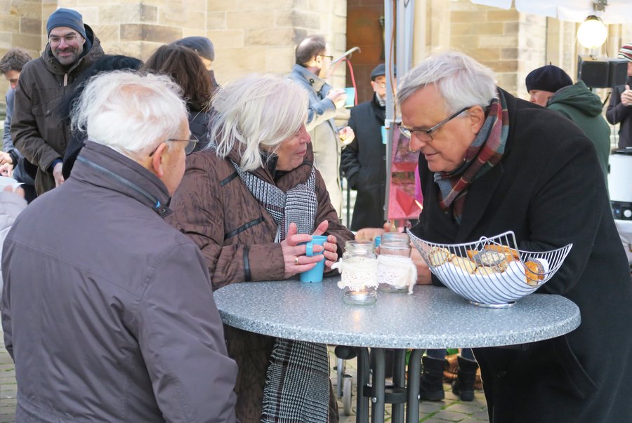 Bischof Wiesemann im Austausch mit Teilnehmenden der Gedenkveranstaltung für die Betroffenen von sexuellem Missbrauch 2023 in Landau © Foto: Henning Wiechers