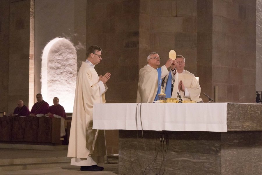 Speyer. Beim Pontifikalamt zum Jahresschluss im Dom zu Speyer erlebten die Gottesdienstbesucher einen nachdenklichen Bischof Dr. Karl-Heinz Wiesemann. In seiner Predigt forderte er Liebe statt Hass, Solidarität statt Egoismus, Gemeinschaft statt Ausgrenzung und Unmenschlichkeit. Er appellierte, sich nicht von Angstmachern leiten zu lassen, sondern auf Gott zu vertrauen und anderen Hoffnung und Liebe zu geben. Zur Messe am Silvester-Nachmittag kamen wie jedes Jahr mehrere hundert Gläubige in die Kathedrale.