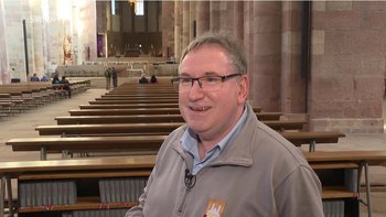 Speyer. Am Montag war das SWR-Fernsehteam der Landesschau Rheinland-Pfalz zu Gast im Speyerer Dom. Ihre Mission: Sakristan Markus Belz bei seiner Arbeit zu begleiten. Markus Belz kümmert sich bereits seit 34 Jahren um das innere Erscheinungsbild des Speyerer Doms und die Abläufe bei den Gottesdiensten. Zur Osterzeit hat er alle Hände voll zu tun. Am Tag der Chrisammesse gab Belz spannende Einblick in die Sakristei, berichtete von seinen vielfältigen Aufgaben, dem Dom als "Oase" und seinem Glauben.