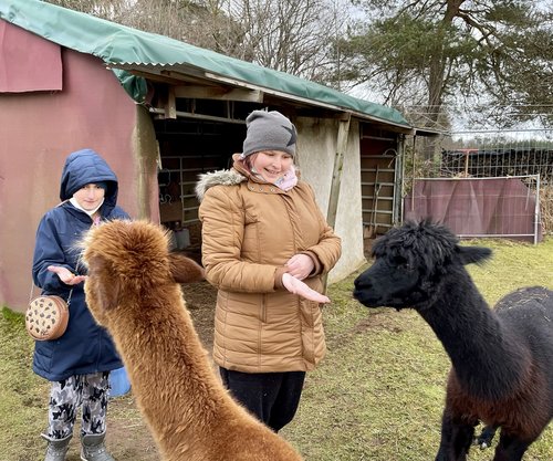 Bislang hat Schmitt drei Alpakas. Fest steht aber: es sollen noch ein bis zwei Tiere der Herde beitreten. Ursprünglich wurde das Tier wegen seiner Wolle gehalten. Die war, so Schmitt, damals so teuer, dass sie nur Könige tragen durften. Ein Lastentier, etwa wie der Esel, ist das Alpaka jedoch nicht. Katharina Kornhaaß und Verena Scheuermann knipsten von den kuscheligen Tieren jede Menge Erinnerungsfotos. Die, so versprach Heinz, werden zu Hause ausgedruckt und ins Fotoalbum geklebt. Fest steht: Es soll auch wieder mehr solcher Aktion geben. Aufgrund der Corona-Pandemie und der Lockdowns mussten mehrere Aktionstage ausfallen. Sie sollen aber nachgeholt werden. Generell sollen die Besuchstage fest in den Kalender integriert werden.