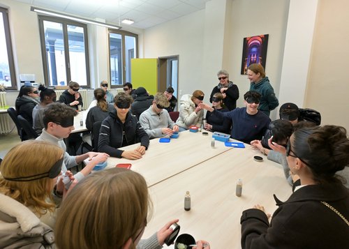 Im Zentrum der Begegnungstage steht der Kontakt mit Menschen, die in ganz unterschiedlichen Bereichen beim Bistum Speyer oder in einer kirchlichen Einrichtung beschäftigt sind. Aus einem breiten Angebot konnte jeder Teilnehmer und jede Teilnehmerin zwei Workshops besuchen. Großen Anklang fand in diesem Jahr etwa ein Workshop zum Thema Inklusion. Katharina Kintz, Seelsorgerin für Menschen mit Behinderung, und Monika Scherr, die selbst sehbehindert ist, ließen die Schülerinnen und Schülern erfahren, wie wichtig es ist, Menschen mit Behinderung Zugehörigkeit und Teilhabe zu ermöglichen. Die Jugendlichen konnten in mehreren Übungen ausprobieren, was es heißt, auf andere Sinne als auf das Sehen angewiesen zu sein. Vor allem aber erlebten sie das Gespräch mit der Betroffenen als eindrucksvoll. Wie sich ihre Kirche für Menschen mit Einschränkungen stark macht, war vielen der Teilnehmenden bisher nicht klar.