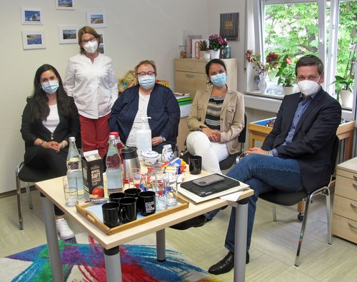Offenes Ohr und Interesse für die Situation: CDU-Fraktionsvorsitzender Christian Baldauf besuchte die Frankenthaler Außenstelle des Caritas-Zentrums Speyer und tauschte sich mit den Mitarbeiterinnen aus.