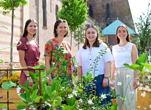 Die ARC-Domführerinnen 2024 v.l.n.r.: Anke Neys, Johanna Kehne, Annabel Hiller, María López Corpas © Domkapitel Speyer, Klaus Landry