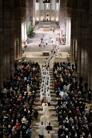 Für die feierliche musikalische Gestaltung im Pontifikalamt am 25. Dezember sorgten der Mädchenchor, die Domsingknaben und die Dombläser gemeinsam mit Domorganist Markus Eichenlaub.