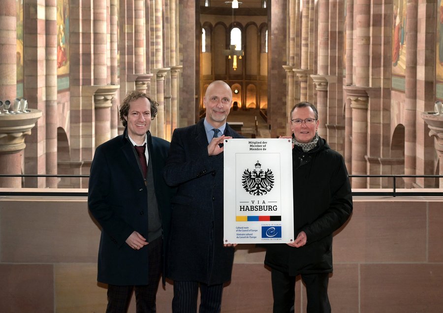 Speyer. Als Grablege des ersten Habsburger Königs Rudolf I. und seines Sohnes Albrecht I. spielt der Speyerer Dom als Gedächtnisort des Geschlechts eine kaum zu überschätzende Rolle. Daran knüpft auch die aktuelle Landesausstellung „Die Habsburger im Mittelalter. Aufstieg einer Dynastie“ im Historischen Museum der Pfalz an, in der mehrfach auf die Bedeutung der Habsburger für den Dom, die Stadt und die Region verwiesen wird. Dies war der Anlass dafür, den Dom zu Speyer in die „Via Habsburg“ aufzunehmen. Die rund 1.000 km langen Kulturroute „Via Habsburg“, die sich neben Österreich, auch über Deutschland, Frankreich und die Schweiz erstreckt, verbindet historische Schauplätze, die in engem Zusammenhang mit dem Haus Habsburg(-Lothringen) stehen. Der Speyerer Dom wird nun zum nördlichsten Punkt der Route in Deutschland. „Für den Speyerer Dom bedeutet die Aufnahme, dass er als selbsterwählte Begräbnisstätte des ersten Habsburgers auf dem Königsthron und als Gedächtnisort der europäischen Herrscherdynastie auf neue Art erfahrbar wird“, sagte Domdekan und Domkustos Dr. Christoph Kohl anlässlich der feierlichen Aufnahme des Doms am 4. März 2023 in Speyer. Vinzenz Baron von Stimpfl-Abele als Vertreter der „Via Habsburg“ bezeichnete die romanische Kathedrale als „neues Highlight“ auf der Kulturroute des Europarates.