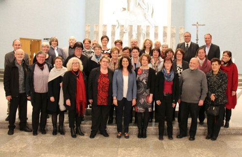 Speyer. Mehr als 30 Mitarbeiterinnen und Mitarbeiter waren am Dienstagabend der Einladung von Generalvikar Andreas Sturm zur Dankfeier für verdiente Mitarbeiterinnen und Mitarbeiter im Bischöflichen Priesterseminar in Speyer gefolgt. Aus allen Abteilungen des Bischöflichen Ordinariats und der Maria-Ward-Schule in Landau kamen diejenigen zusammen, die im Jahre 2018 ihr 25- oder 40-jähriges Dienstjubiläum begehen konnten oder in den Ruhestand verabschiedet wurden. Nach einem Sektempfang feierten sie zusammen mit ihren Partnern und Vorgesetzten in der Seminarkirche eine Dankvesper, die von einer Schola aus Domkapitularen und Domorganist Markus Eichenlaub musikalisch gestaltet wurde.