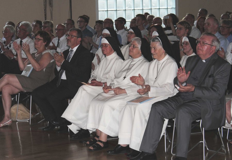 Wie gut der Spagat zwischen Tradition und Moderne funktioniert, das konnten am besten die Schülerinnen bezeugen. Sie taten es mit einem vielfältigen und kurzweiligen Rahmenprogramm, bestehend aus Musikbeiträgen von aktuellen und ehemaligen Schülerinnen sowie aus Tanzdarbietungen zu Musik und in Kostümen vergangener Jahrzehnte bis heute. Und auch die beiden Schülersprecherinnen Clara Werra und Cora Berger stellten der Schule zum Abschluss ein hervorragendes Zeugnis aus: Das Edith-Stein-Gymnasium sei eine „familiäre Schule, in der jede ihren Platz hat und respektiert wird.“