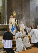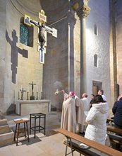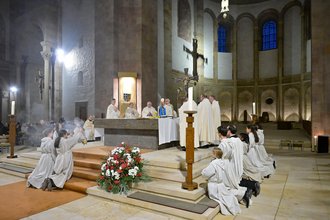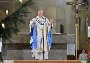 Genau wie eine Kirche, die nach Osten zur aufgehenden Sonne ausgerichtet ist, sei es auch ein Zeichen des Glaubens, unterwegs zu sein zu dem, der aufgeht und die Kraft hat, Licht neu zu entfalten. „Wenn wir in der Kirche Gottesdienst feiern, und wenn unser Glaube uns trägt, dann sind wir Pilger, die auf dem Weg zum Licht sind“, so Bischof Wiesemann in seiner Predigt. „Das ist die Kraft, die diese Welt braucht: Menschen, die aufstehen, die sich nicht entmutigen lassen, die sich als Pilger zum Licht hin, zu Christus hin, auf den Weg machen.“