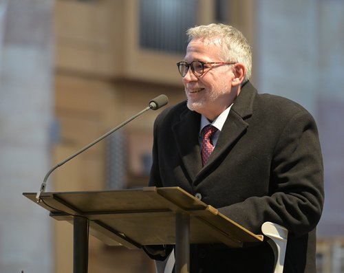 In ökumenischer Verbundenheit sprach auch Oberkirchenrat Markus Jäckle ein Grußwort, in welchem er die gute Zusammenarbeit mit Franz Vogelgesang und Thomas Kiefer in den Mittelpunkt rückte. Er freue sich auf die Zukunft und das gemeinsame Tun, nun mit der neuen Leitung Kerstin Fleischer.