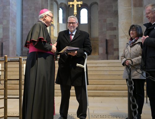 In seiner Predigt würdigte Bischof Dr. Karl-Heinz Wiesemann das herausragende Engagement von Thomas Kiefer und Franz Vogelgesang. „In der Seelsorge schlägt das Herz der Kirche“, betonte der Bischof und hob hervor, dass beide durch ihr Wirken die pastorale Arbeit im Bistum nachhaltig geprägt haben. Der Speyerer Bischof: „Die Seelsorge gleicht einem Blutkreislauf. Seelsorgerinnen und Seelsorger sollen sich vom Pulsschlag Gottes bewegen lassen, damit die Lebenskraft Gottes bis in die entlegensten Gefäße strömen kann.“