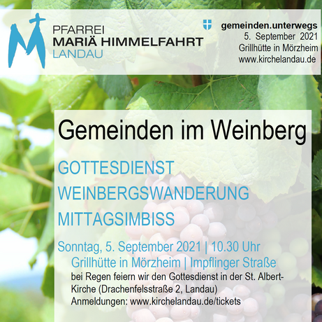 Landau. Gottesdienst im Weinberg, Weinbergswanderung und Mittagsimbiss sind einander ergänzende Bestandteile eines interessanten Vormittags in den katholischen Gemeinden Mörzheim und Wollmesheim der Pfarrei Mariä Himmelfahrt am Sonntag, 5. September.