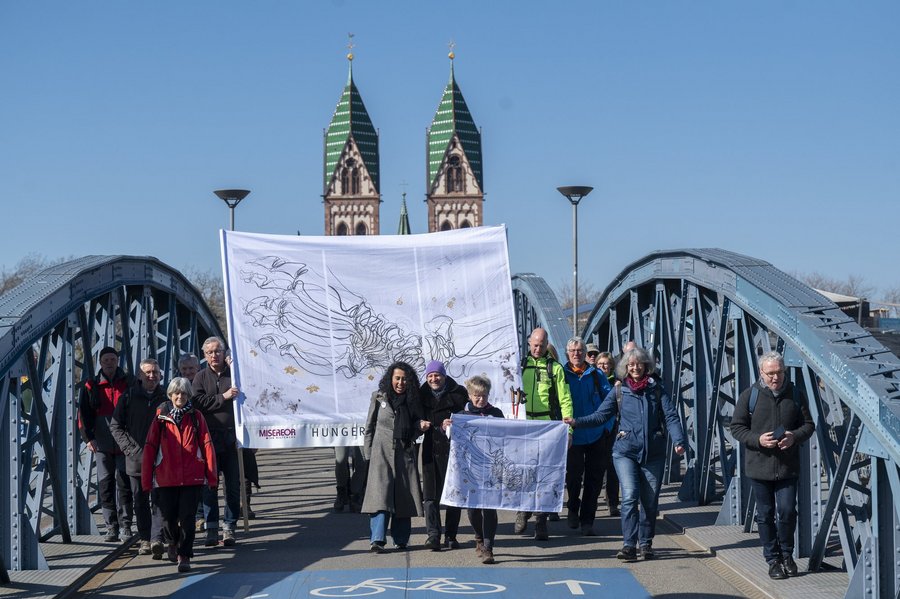Seit 1976 präsentiert Misereor jedes zweite Jahr zur Fastenzeit ein Hungertuch. Seit 1986 tragen es Wallfahrerinnen und Wallfahrer vor dem Beginn der Fastenzeit von dem Ort, an dem die letztjährige Fastenaktion eröffnet wurde, zum Eröffnungsort der neuen Fastenaktion. 38 Hungertuchwallfahrer machen sich daher zu Fuß auf den Weg von Augsburg zur diesjährigen Fasteneröffnung in Ludwigshafen am Rhein. Die Wallfahrt startet am 12. Februar zunächst mit einem Einkehrtag im Kloster St. Ottilien im oberbayerischen Landkreis Landsberg am Lech. Die Wallfahrer beschäftigen sich dabei inhaltlich mit dem aktuellen Hungertuch und lernen die kolumbianische Partnerorganisation der Misereor-Fastenaktion 2024 kennen. Voraussichtlich wird dort auch der Künstler des Hungertuches mit dabei sein.