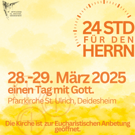 Deidesheim. Die katholische Kirche St. Ulrich öffnet am 28. und 29. März 2025 ihre Türen für eine ganz besondere Aktion: „24 Stunden für den Herrn“, eine weltweite Gebetsinitiative von Papst Franziskus. Zum zweiten Mal beteiligt sich die Pfarrei Heiliger Michael Deidesheim an diesem geistlichen Angebot, das Menschen einlädt, Versöhnung, Gebet und Stille vor Gott zu erleben.