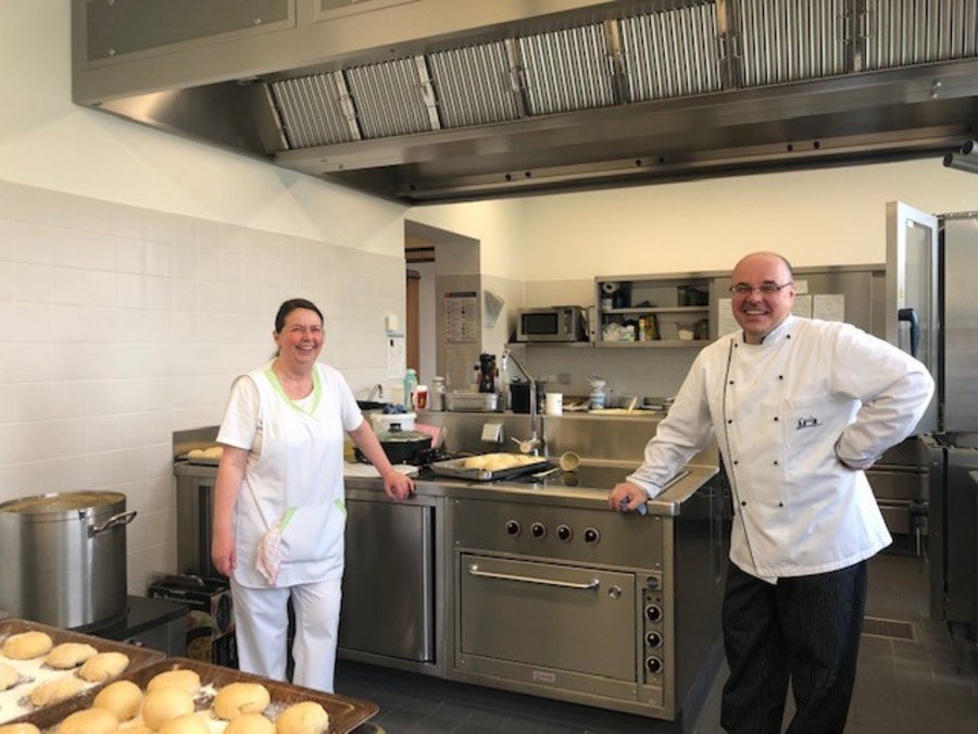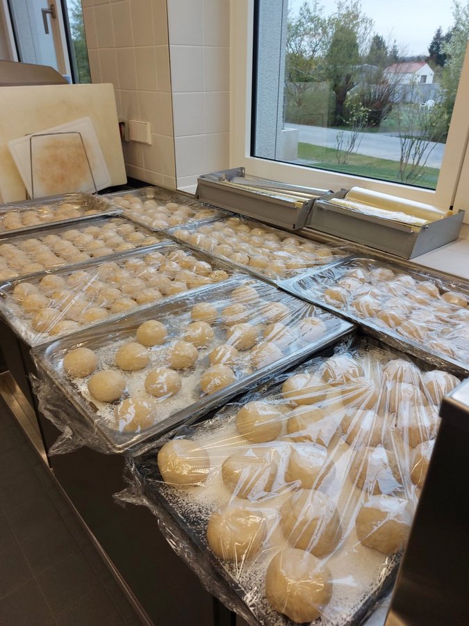 Die hungrigen Fastenesser durften sich auf 40 l Kartoffelsuppe, 20 l, Weinsoße, 20 l Vanillesoße und 400 Dampfnudeln freuen. Alles wurde durch die Mitarbeiter/innen der Hauswirtschaft im Priesterseminar frisch zubereitet, die an diesem Tag ehrenamtlich arbeiteten. Es wurden ca. 130 Gäste vor Ort verköstigt und unzählige Schüsseln und Töpfe mit den Leckereien gefüllt, für diejenigen, die lieber zu Hause essen wollten.