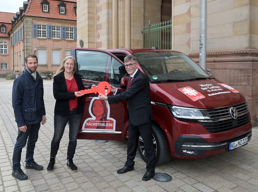 Am Ende des Gottesdienstes übergab Hundemer einen symbolischen Autoschlüssel an die Referentin für Gemeindecaritas, Stefanie Horn-Wolniewicz, die zusammen mit ihrem Kollegen Lukas Buschbacher und Sabine Masser aus der Marketing-Abteilung des Caritasverbandes nun eine Woche lang jeden Tag andere Caritas-Aktionen in der Diözese anfahren wird. Ziel der Aktion ist es, mit möglichst vielen Menschen ins Gespräch darüber zu kommen, was sie bewegt, worüber sie nachdenken und was sie sich von einer solidarischen Gesellschaft wünschen.