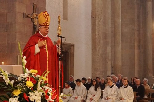 Der Bischof knüpfte in seiner Predigt an die Lesung aus der Apostelgeschichte an. Sie berichtet von den vielsprachigen Feuerzungen, die mit lautem Brausen vom Himmel herabkamen. Wegen diesem Sprachenwunder konnten sich alle Menschen aus verschiedenen Völkern auf einmal untereinander verstehen, rief Wiesemann ins Gedächtnis und stellte fest: „Die erste Gabe des Heiligen Geistes ist die Überwindung des Nationalismus.“ Damit schlug er den Bogen in die heutige Zeit. „Alles, was nationalistisch angehaucht ist, ist gegen den Heiligen Geist.“ Christen dürften stolz auf ihr Land sein, aber dieser Stolz dürfe sich nicht gegen andere richten.