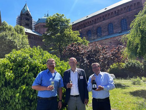 Stefan Roos, Gottfried Jung und Franz Frey (v.l.n.r.) freuen sich über den neuen alkoholfreien Sekt © Dombauverein Speyer