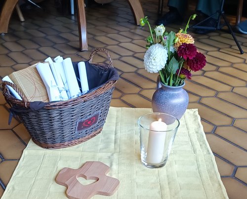 Neustadt. Nicht auf Stühlen oder Bänken, und auch nicht in der Kirche – sondern auf Picknickdecken im Park. Das war die Idee für einen Picknick-Gottesdienst im Kloster Neustadt Ende Juli. Nachdem es den ganzen Tag geregnet hatte, musste die Wortgottesfeier kurzfristig in den Pfalzkeller des Bildungs- und Gästehauses verlegt werden.