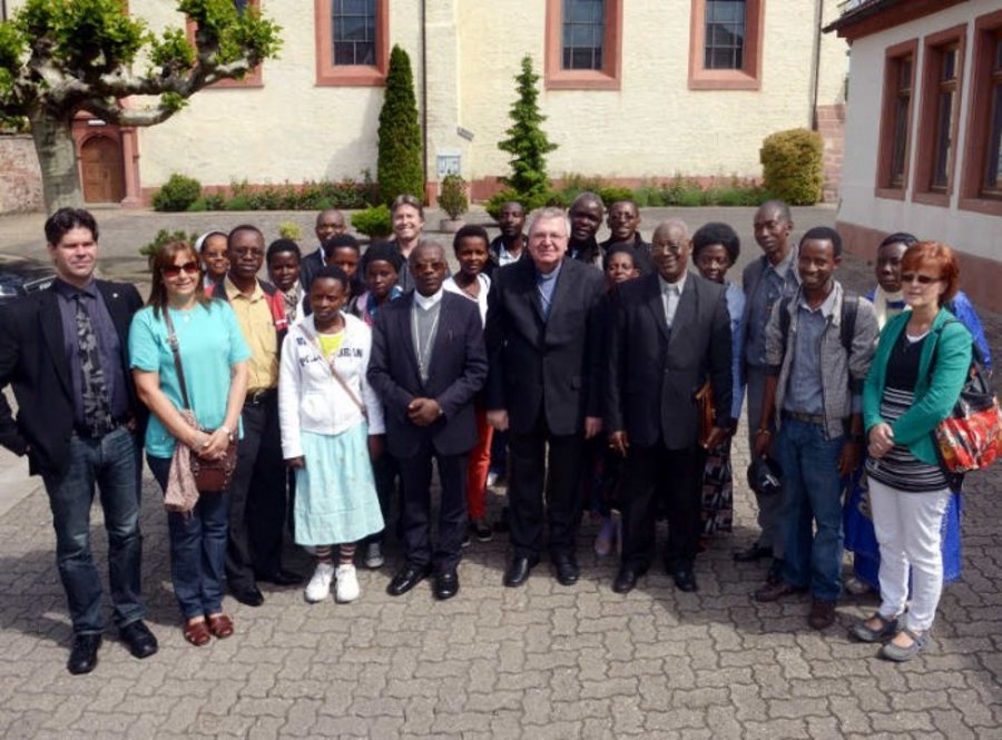 Eine Delegation aus Ruanda 2013 beim Besuch der Partnergemeinde St. Martin (Kaiserslautern) im Kloster St. Magdalena in Speyer. In der Bildmitte Weihbischof Otto Georgens, links von ihm Bischof Jean Damascène Bimenyimana. Kaiserslautern-St. Martin hatte als erste Pfarrgemeinde des Bistums Speyer 1983 Kontakte in die Speyerer Partnerdiözese Cyangugu geknüpft.