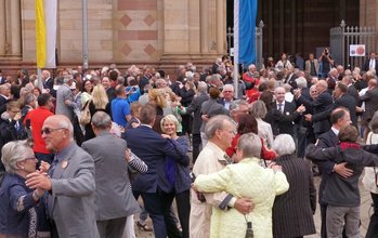 Zum Abschluss der Feiern der Ehejubiläen sind die Paare wieder zum Walzertanz vor dem Dom eingeladen.