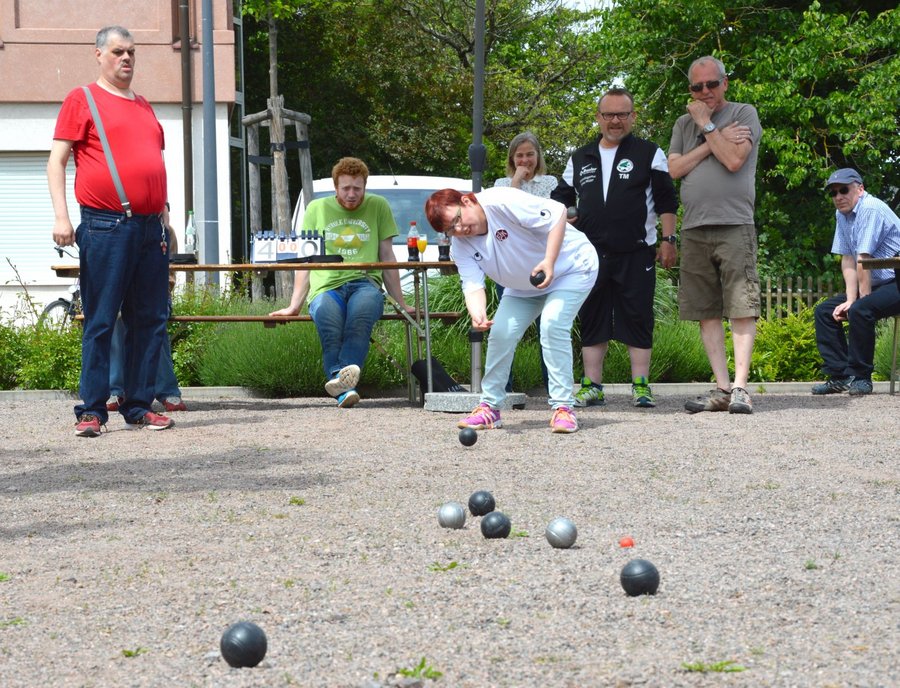 Hahn ist Caritas-Mitarbeiter und am Tag der Veranstaltung Turnierleiter. Jeder gegen jeden, das ist das Grundprinzip des Ablaufs. Das Regelwerk des Original-Boulespiels ist leicht abgeändert worden. „Alle sollen die gleichen Chancen haben“, erklärt Hahn dazu. Denn unter den Teams, die heitere Namen wie „Pille“, „Doppelfrosch“ oder „Schorlebatscher“ tragen, sind auch drei Zweier-Mannschaften des Förderzentrums zu finden.