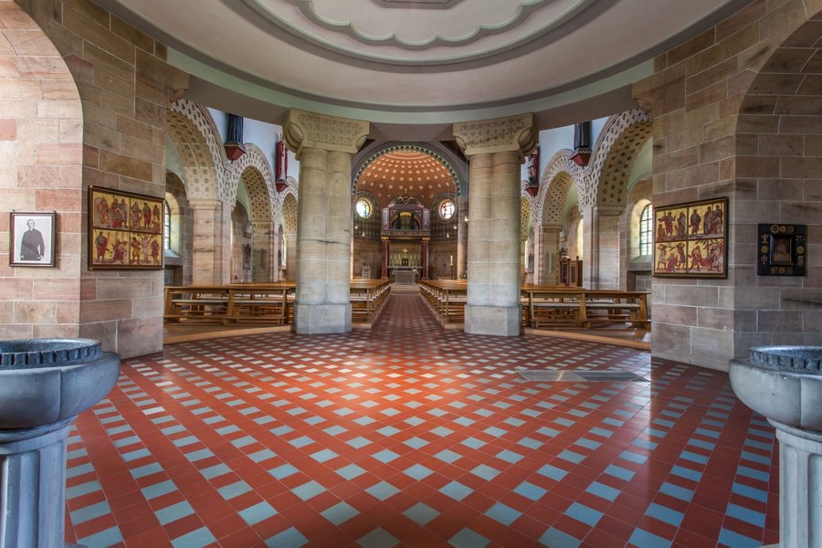 Die Kirche St. Sebastian wurde von 1915 bis 1917 nach Entwürfen des Architekten Rudolf von Pérignon erbaut und am 3. Oktober 1917 von Bischof Ludwig Sebastian geweiht. Ihr wuchtiger Rundturm ist ein Wahrzeichen der Stadt. Die alte Pfarrkirche St. Theodor war im Jahr 1900 durch einen Brand zerstört worden.