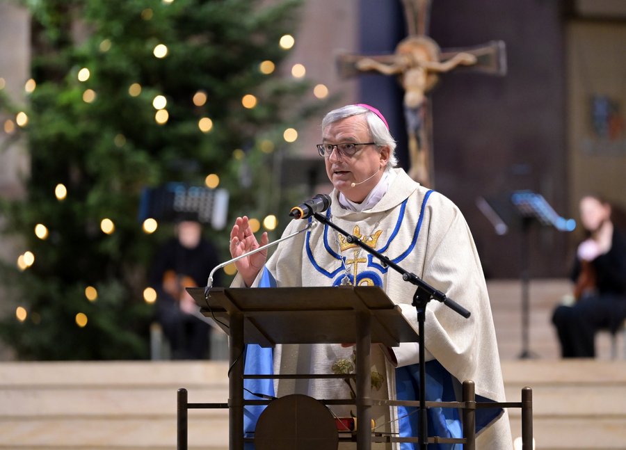 „Glaube ist nicht das Schönreden der Wirklichkeit, sondern die Eröffnung von Zukunftsräumen. Ohne ihn bliebe nur die halbe Wahrheit übrig“, ist sich Bischof Wiesemann sicher. Abschließend zitierte er den evangelischen Theologen und Widerstandskämpfer Dietrich Bonhoeffer: „Von guten Mächten treu und still umgeben, behütet und getröstet wunderbar, so will ich diese Tage mit euch leben und mit euch gehen in ein neues Jahr.“