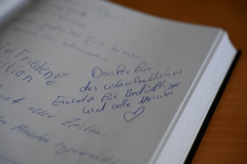 Im Kondolenzbuch finden sich aber nicht nur deutsche Botschaften. Es gibt Texte in insgesamt 23 Sprachen, von Italienisch, Spanisch oder Französisch über Polnisch, Finnisch oder Rumänisch bis hin zu Chinesisch, Arabisch oder Latein.