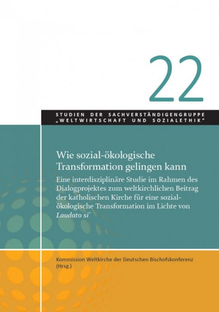 Am 16. Juni wurde in einer prominent besetzten Hybrid-Veranstaltung die Studie "Wie soziakökologische Transformation geklingen kann - Eine interdisziplinäre Studie im Rahmen des Dialogprojekts zum weltkirchlichen Beitrag der katholischen Kirche für eine sozialölokolische Transformation im Lichte von Laudato si'" vorgestellt und breit diskutiert. Der Text steht kostenfrei hier zum Download in der Bibliothek der DBK zur Verfügung oder kann dort günstig als Printversion bestellt werden.