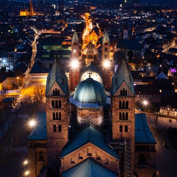Eintritt zum Kaisersaal und Turmaufstieg mit Blick auf das nächtliche Speyer