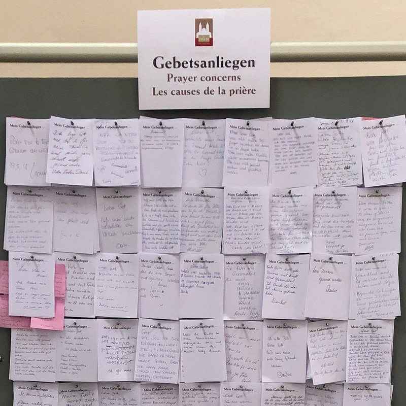 Wir schreiben das Bittgesuch auf, hängen es, falls gewünscht, an die Anliegenwand im Dom und geben es an eine der Schwesterngemeinschaften in Speyer weiter, welche die Anliegen weiter vor Gott tragen.