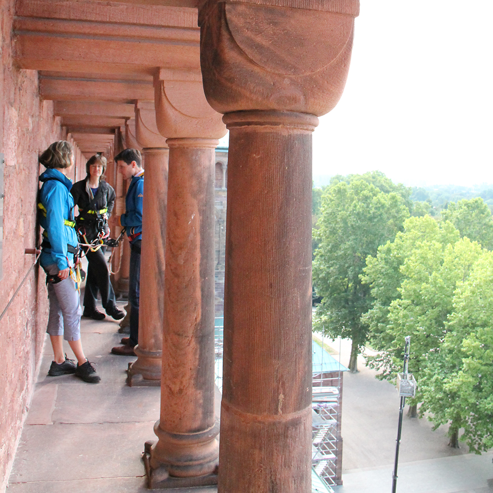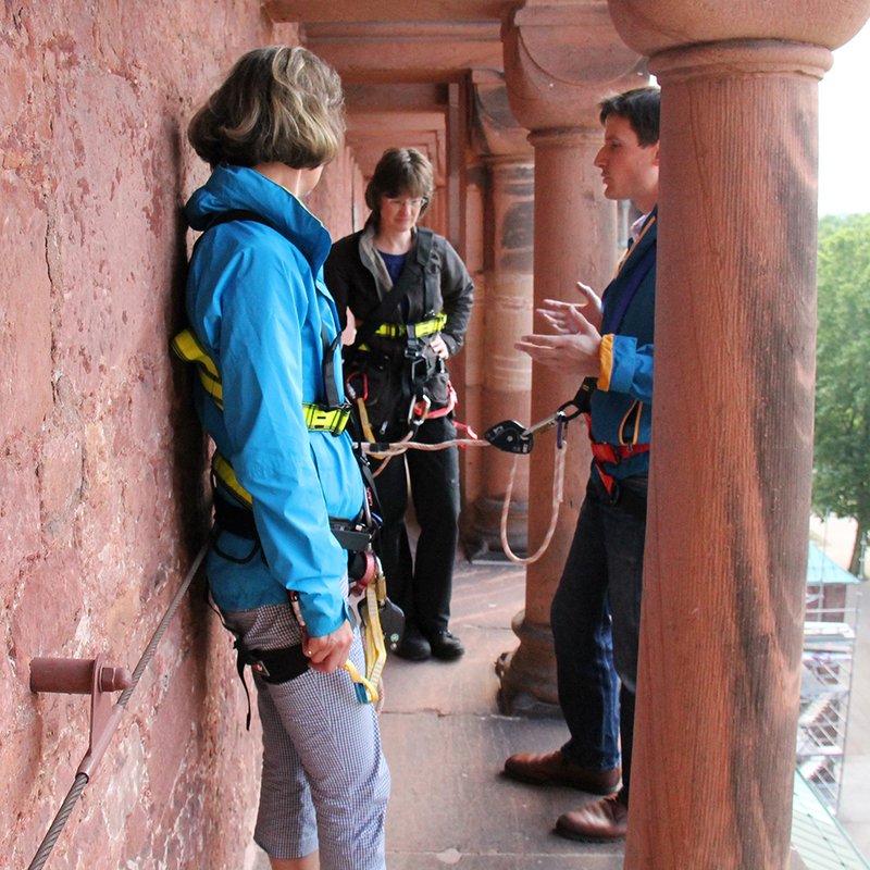 Die Höhenführung auf der Zwerggalerie stellt besondere Anforderungen an die Teilnehmer und den sie begleitenden Domführer. Die Führungsbedingungen müssen vorher eingesehen und die Kenntnisnahme schriftlich bestätigt werden. Höhenangst sowie körperliche Beeinträchtigungen sind Hinderungsgründe. Bitte beachten Sie die besonderen Führungsbedingungen.