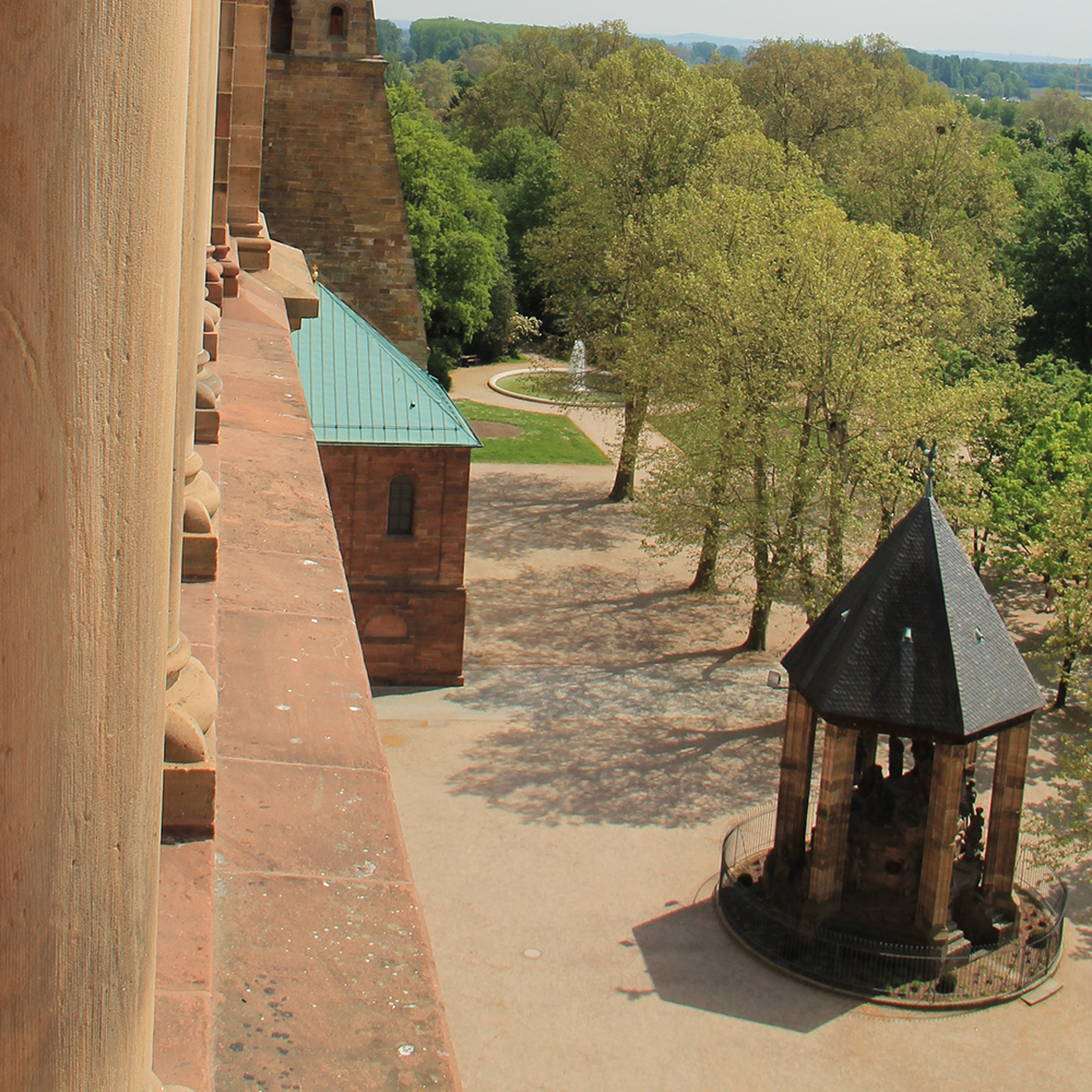 Die Zwerggalerie befindet sich in rund 30 Metern Höhe. Es handelt sich dabei um einen begehbaren Säulengang unterhalb des Dachansatzes. Dieses architektonische Element gehört zu den herausragenden Merkmalen des Speyerer Doms.